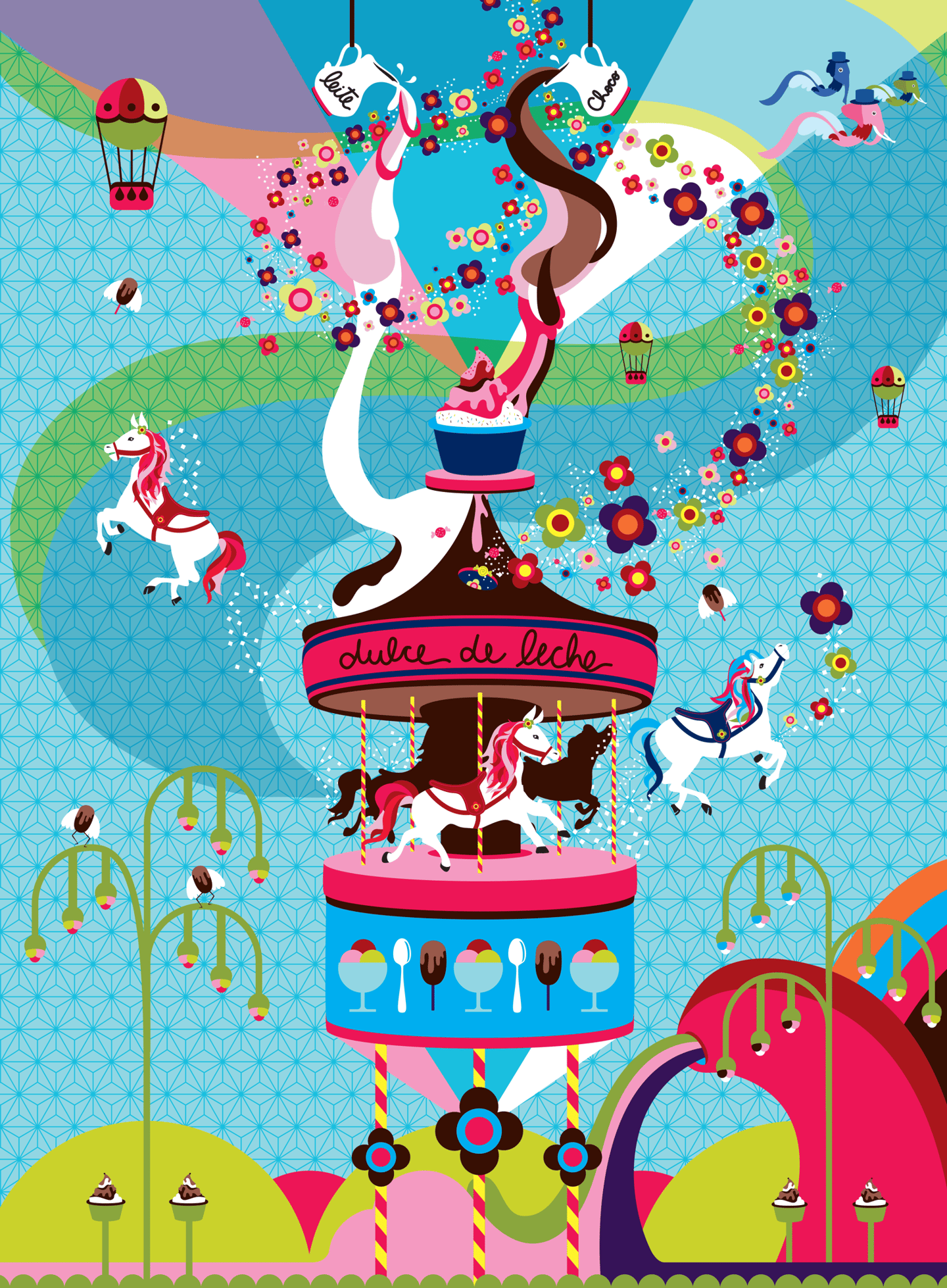 I was invited to create illustrations for new Freddo’s store in São Paulo.The initial brief was to illustrate something related to São Paulo, but after a few conversations, the idea evolved into a magical forest, inhabited by unique beings, just like their ice creams. A memorable and unforgettable project.The architectural design was simple, with neutral tones, which allowed me to use vibrant colors to create contrast and capture the audience's attention.